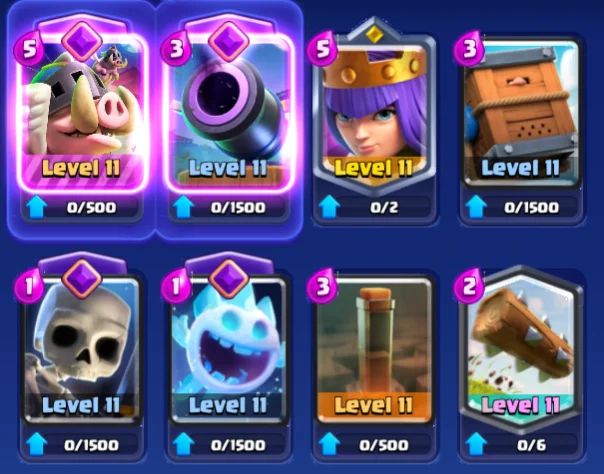 This is probably the most popular Royal Hogs deck right now. I saw it all over RoyaleAPI when researching decks, and you’ll probably see it in the TV Royale too if you check that anytime soon. And, all in all, it’s easy to see why. Royal Hogs and Royal Ghost are the two newest evolutions, and they’re both really strong. They also work well together, as Royal Hogs is an incredible win con while Royal Ghost is excellent for defending. With these two evolutions, this deck is extremely hard to beat.