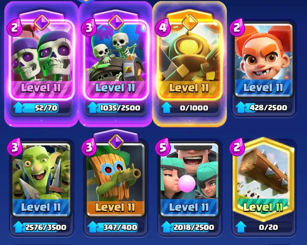 For the last meta deck right now, I think a Log Bait deck fits well. This kind of deck wants to win by forcing opponents to waste their spells like Log, Barb Barrel, Arrows, or other cheap spells. This clears the way for win cons like Wall Breakers and Skeleton Barrel to make it to towers without difficulty. You could also use Goblin Barrel in this kind of deck, but its evolution isn’t as strong as Wall Breakers’ or Skeleton Barrel’s, so it’s not being played as much right now. Goblin Gang, Dart Goblin, and Rascals are all good for getting opponents to waste their spells, then they can’t do anything to defend against the cheap win cons they usually would be able to stop. It’s a risky deck to play sometimes because some opponents simply won’t have a good deck for it to interact with, but most of the times it works really well.